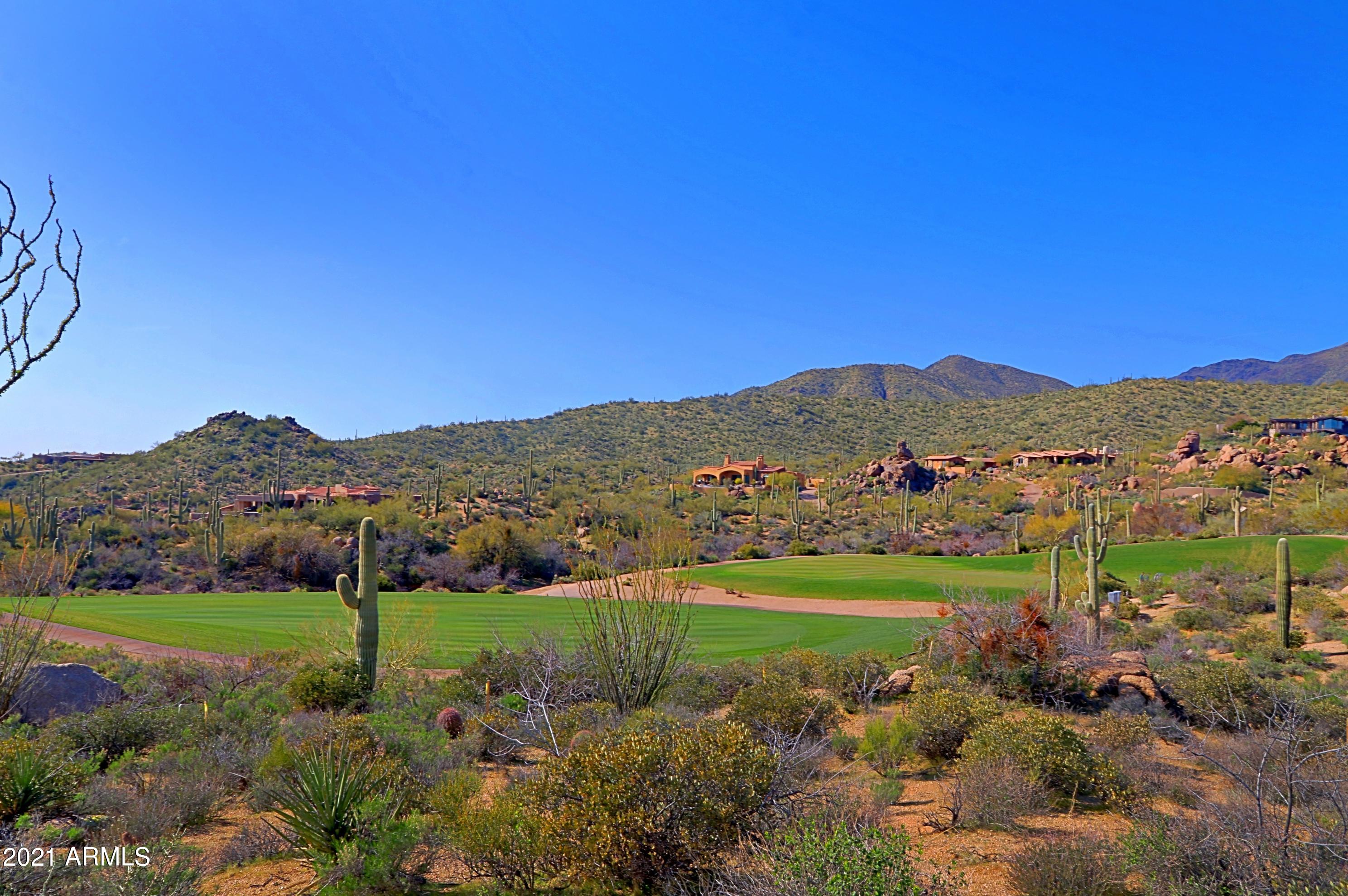 Creatively designed to sit high on a ridge to take full advantage of the 360 degree views in the upper elevations of Desert Mountain, this upcoming masterpiece in Saguaro Forest is a show-stopper. Offering serene privacy and seclusion on nearly 3 acres between the 13th and 14th fairways and greens of the Chiricahua Golf Course, this home is under construction with a projected completion in early 2022. In this one-of-a-kind home, walls of glass bring the outside into a kitchen generously equipped with top-of-the-line Sub-Zero and Wolf appliances, a large island, walk-in pantry, and breakfast room. The great room is open and airy with a stunning fireplace and retractable glass doors that open to a spacious covered patio. Serving that patio is a cantina bar with disappearing windows for that easy Arizona indoor/outdoor living. A glass wine room complements the formal dining room. Perhaps the best view is from the master suite; walls of windows open so you can step directly into the sparkling pool and enjoy breathtaking views of the Chiricahua Golf Course, surrounding mountains and Black Mountain in the distance. With 3 additional bedroom suites and a casita with kitchenette, guests will have plenty of room to enjoy.