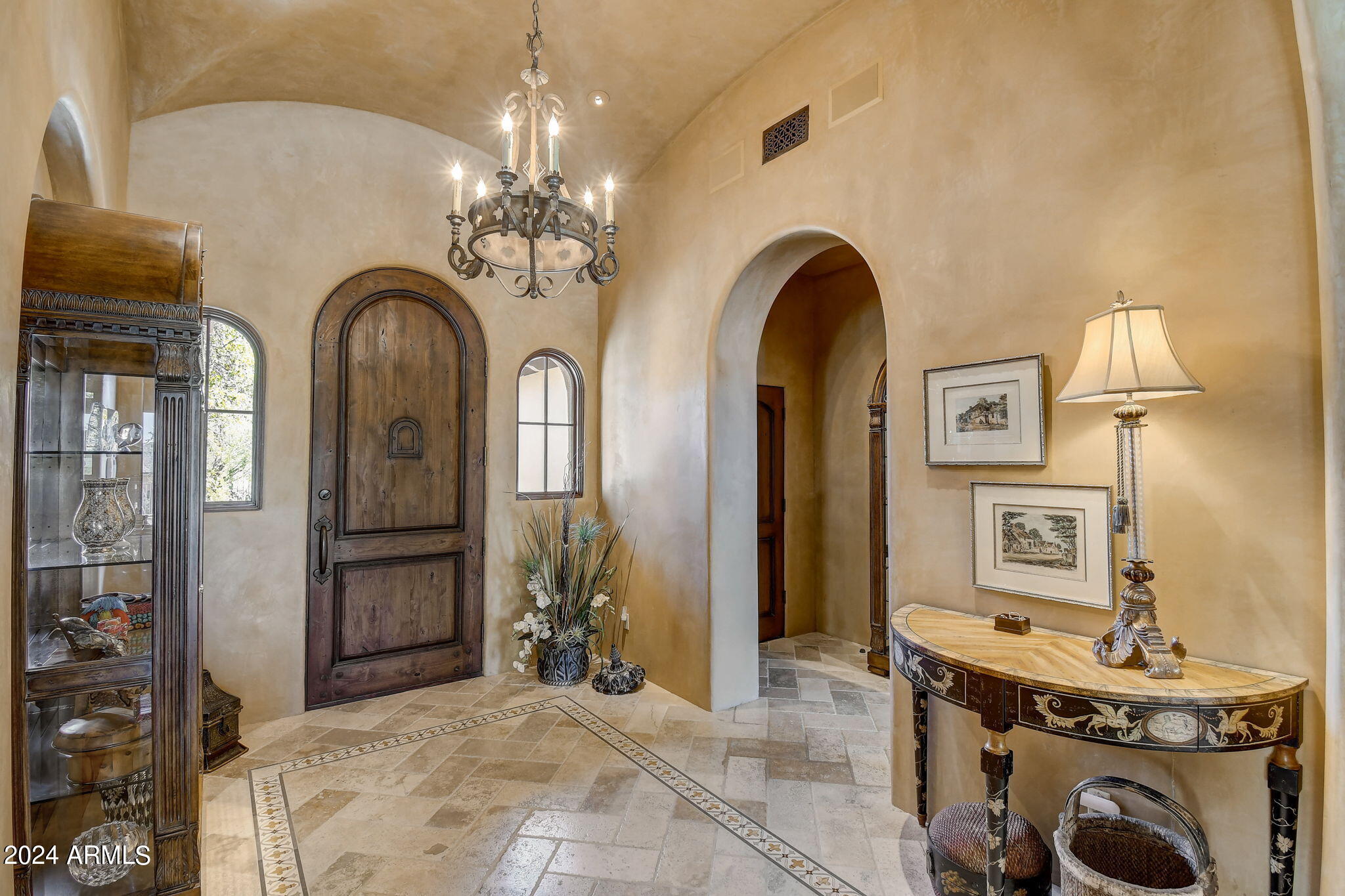 Remember your last trip to Spain and how great that country villa you rented made you feel? How its timeless ''Old World'' character, textures, and colors warmly connected you to the generations of families who lived there before? (''Timeless'' elements really are timeless!). And that great restaurant nearby! So relaxing and delicious! Warm, sunny days. Cool evenings. Clean air. Stars. Reconnecting with family and friends. Seeing life more clearly in such a calm environment. And, that nearby little town you visited several times? More memories! And, new friends, too. Want more of this, in a world-class private golf and outdoor recreation Club? In the USA? Sure! How? Live in this home, in Desert Mountain, in Scottsdale, AZ with a Full Golf Membership to the Desert Mountain Club! This home is a warm and inviting 5,794 sf graciously appointed and proportioned Spanish Hacienda-style home (brick caps on horizontal walls built of natural stone and stucco; some pitched Redlands clay tile roofs; brick sills under many windows). Kitchen/family room plan, with separate dining and living rooms. South/southwest solar exposure. Sited at 3,297' it has fabulous views of the Scottsdale and Phoenix valley (city light views at night!), winter sunsets, and mountains, near and far, and both north and south/southwest. Designed by highly respected designer, German Robledo, to offer a living environment filled with timeless elements that never go out of style. Built in 2005 by Salcito Homes, a leading regional builder, known for durable, high-quality homes (workmanship, appliances, systems, materials and finishes). Meticulously maintained since 2007 by current owner, selling to downsize within Desert Mountain. Offered with access to seller's Full Golf Membership in The Desert Mountain Club via separate payment to the Club (after successful application), avoiding multi-year waitlist (call Club for details prior to offer). In a particularly beautiful/prestigious "Village", The Saguaro Forest, named for ubiquitous giant saguaro cacti. (See "Locator Map" in Documents).